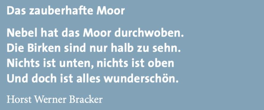 Entlang eines mit Kleinblütigem Springkraut umsäumten Pfades findet man umgestürzte Bäume, da dieser Teil des Waldes nicht mehr bewirtschaftet wird. Berührt man die reifen Schoten des Springkrauts, so „explodieren“ diese. Das „Totholz“ der Bäume bildet die Lebensgrundlage für eine Fülle von Tier- und Pflanzenarten und sorgt so für die Erhaltung der Artenvielfalt des Moores. Insbesondere für Insekten bietet Totholz Lebensraum und bildet somit auch die Nahrungsgrundlage für die Vogelpopulation im Vogelschutzgebiet.